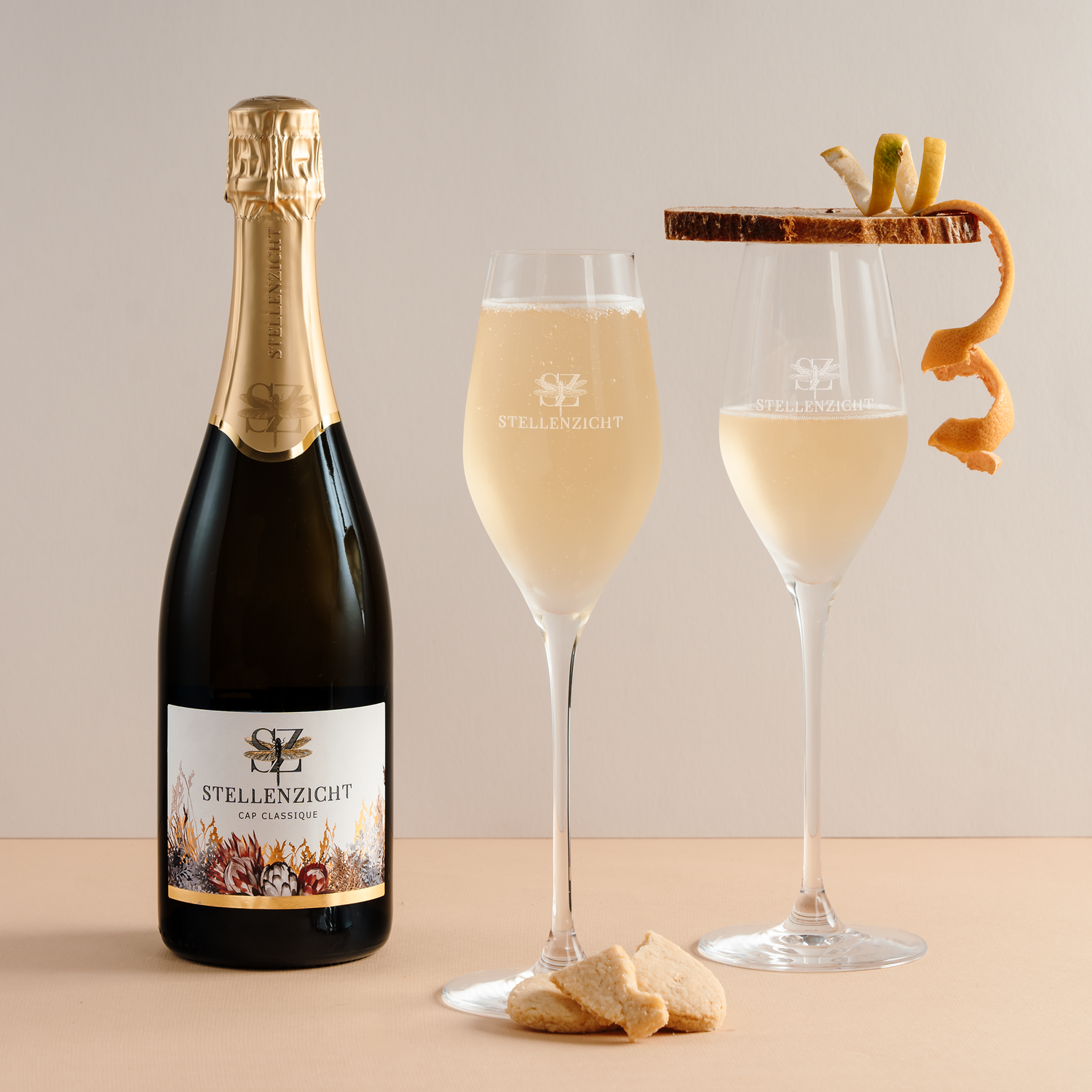 Elegant Cap Classique showing fine bubbles, bright citrus, and creamy depth crafted for celebration, balance, and precision with finesse.